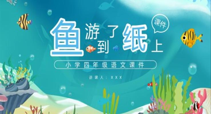 这是一套适用于教师上课教学四年级语文课文《鱼游到了纸上》的PPT课件,主要内容是向学生教授课本内容相关的知识,包括汉字拼音、课本原文、问题思考等;共计13页;随着科技的进步,用电脑PPT授课已经成为教师上课的常用方式之一,相比起黑板的枯燥无味,学生更加容易集中注意力在涵盖动画、图片、声音、文字于一体的PPT;