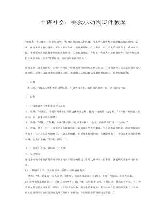 一.材料 小山洞、与幼儿人数相等的动物玩具,小猫头饰若干,猫妈妈的胸饰一只,音乐磁带一盒。二.过程(一)以游戏的口吻和形式导入活动1.教师:“小猫们,今天妈妈带你们到那边森林里去玩,我们一边唱歌一边走吧!”(伴随《蝴蝶花》的音乐,幼儿做律动进入场景)2.教师:“草地上真舒服,小猫们和妈妈一起坐下来休息一会儿,妈妈给你们讲一个故事。”3.故事:从前,有一只可爱的小兔跟着妈妈一起到森林里去采蘑菇,它看到美丽的鲜花,漂亮的蝴碟可开心了。它一会儿去闻闻鲜花,一会儿扑蝴蝶,结果找不着妈妈啦。天渐渐地黑了,小兔找不着妈妈多伤心呀,它大声地喊:“妈妈,妈妈……”。