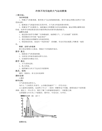 知识和技能 1、理解自然地理环境整体性的基本内涵。2、了解自然地理环境整体性的表现3、使学生树立普遍联系的观点,再利用和改造自然中要充分考虑各地理要素的关系,避免“牵一发而动全身”。过程与方法 1、自主学习,分析 讨论法。2、探究与活动, 理解地理环境的整体性。3、利用景观 图片分析地理环境的整体性。情感、态度与价值观帮助学生树立事物是普遍联系的思想 ,在利用自然中要做到统筹考虑。教学 重点1、地理环境整体性的原因。2、地理要素间相互作用产生新功能。3、自然地理环境的演化过程具有统一性。4、自然地理环境要素会“牵一发而动全身”。教学 难点地理要素间相互作用产生新功能;自然地理环境具有同一演化过 程。教具、资料多媒体课件、景观图片课时安排