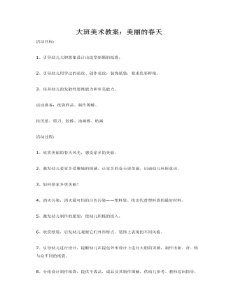 2、引导幼儿用学过的花纹、创作花纹,装饰纸袋,要求色彩鲜艳。3、培养幼儿的发散性思维能力和审美能力。活动准备:纸袋样品、制作图解、挂历纸、剪刀、胶棒、油画棒、粘画活动过程:1、欣赏美丽的春天风光,感受家乡的美丽。2、激发幼儿爱家乡爱聊城的情感,让家乡的春天更美丽,启迪幼儿环保意识。3、如何使家乡更美丽?